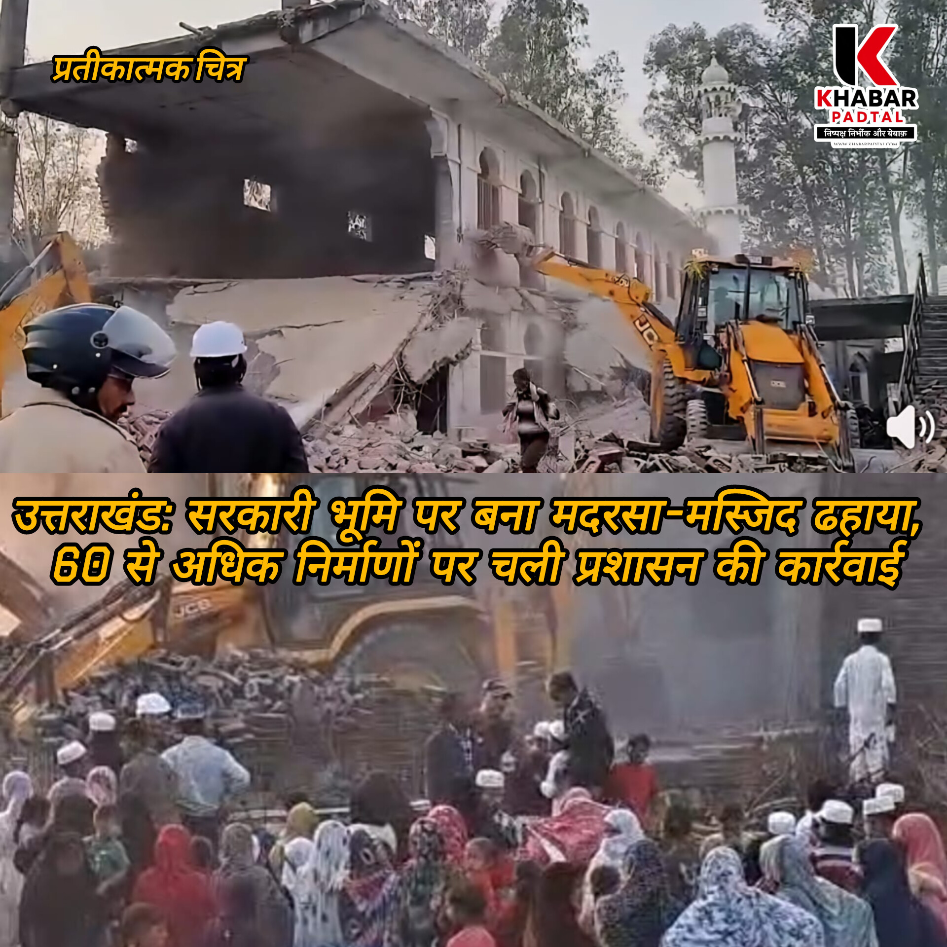 उत्तराखंड: सरकारी भूमि पर बना मदरसा-मस्जिद ढहाया, 60 से अधिक निर्माणों पर चली प्रशासन की कार्रवाई